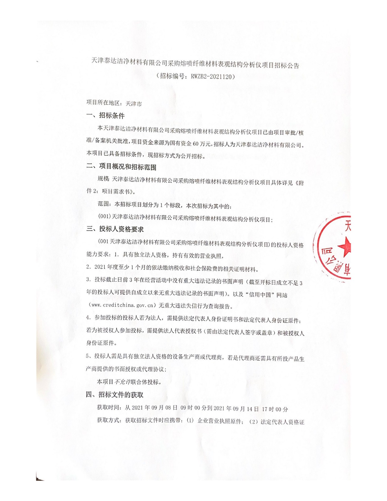 采购熔喷纤维质料表观结构剖析仪项目招标通告